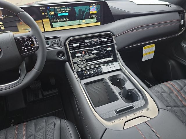 Well Equipped with: Captain's Chair Seat Package (2nd Row Center Console with Two Cupholders, 2nd Row Outboard Captain's Chairs with Armrests, and EZ Flex Second Row Seating System with One Touch Release), PRO-4X Premium Package with Captain's Chair (Biometric Cooling, Climate Controlled Heated and Ventilated Front Seats, Hands-Free Power Liftgate, Heated 2nd Row Seats, in-Car Camera, Intelligent Dash Cam, Intelligent Rear View Mirror (I-RVM), and Panoramic Moonroof), 4WD, 12 Speakers, 3rd row seats: split-bench, 4-Wheel Disc Brakes, ABS brakes, Adaptive suspension, Air Conditioning, Alloy wheels, AM/FM radio: SiriusXM w/360L, Anti-whiplash front head restraints, Apple CarPlay/Android Auto, Auto High-beam Headlights, Auto tilt-away steering wheel, Auto-dimming door mirrors, Auto-dimming Rear-View mirror, Auto-leveling suspension, Automatic temperature control, Brake assist, Bumpers: body-color, Compass, Cross Bars, Delay-off headlights, Driver door bin, Driver vanity mirror, Dual front impact airbags, Dual front side impact airbags, Electronic Stability Control, Emergency communication system: NissanConnect Services, Four wheel independent suspension, Front anti-roll bar, Front Bucket Seats, Front Center Armrest, Front dual zone A/C, Front fog lights, Front reading lights, Front Tow Hooks, Fully automatic headlights, Garage door transmitter: myQ Connected Garage, Genuine wood dashboard insert, Heated door mirrors, Heated Front Bucket Seats, Heated front seats, Heated steering wheel, HVAC memory, Illuminated entry, Illuminated Kick Plates, Knee airbag, Leather steering wheel, Low tire pressure warning, Memory seat, Navigation system: Google Maps, Occupant sensing airbag, Outside temperature display, Overhead airbag, Overhead console, Panic alarm, Passenger door bin, Passenger vanity mirror, Power door mirrors, Power driver seat, Power Liftgate, Power passenger seat, Power steering, Power windows, Premium Paint and 2-Tone Roof, PRO-4X Carpeted Floor Mats with Captain's Chair, Pro-4x Leather Quilted Insert Seat Trim, PRO-4X Mud Guards, Radio: NissanConnect with SiriusXM 360L, Rain sensing wipers, Rear air conditioning, Rear anti-roll bar, Rear Bumper Protector, Rear reading lights, Rear seat center armrest, Rear window defroster, Rear window wiper, Reclining 3rd row seat, Remote keyless entry, Security system, Speed control, Speed-sensing steering, Speed-Sensitive Wipers, Split folding rear seat, Spoiler, Steering wheel memory, Steering wheel mounted audio controls, Tachometer, Telescoping steering wheel, Tilt steering wheel, Traction control, Trip computer, Turn signal indicator mirrors, Variably intermittent wipers, Voltmeter, and Wheels: 20 x 8.5J Painted PRO-4X Alloy.