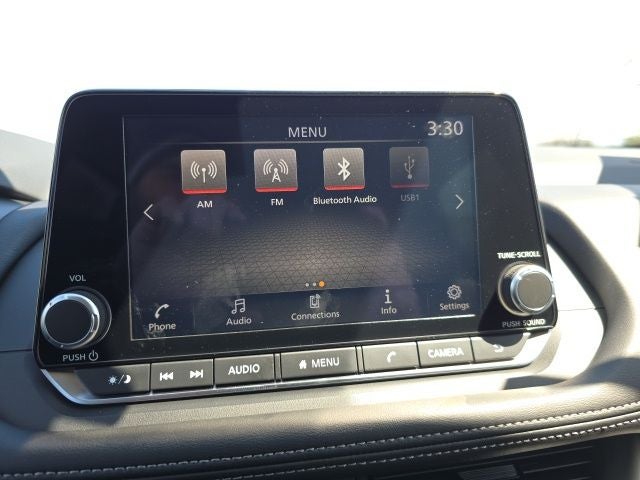 - Radio: AM/FM NissanConnect -inc: 6 speakers plus 2 tweeters, Apple CarPlay, Android Auto, 8" color touch screen display, Bluetooth®, 2 front USB type-C, Wi-Fi hotspot and NissanConnect Services powered by SiriusXM