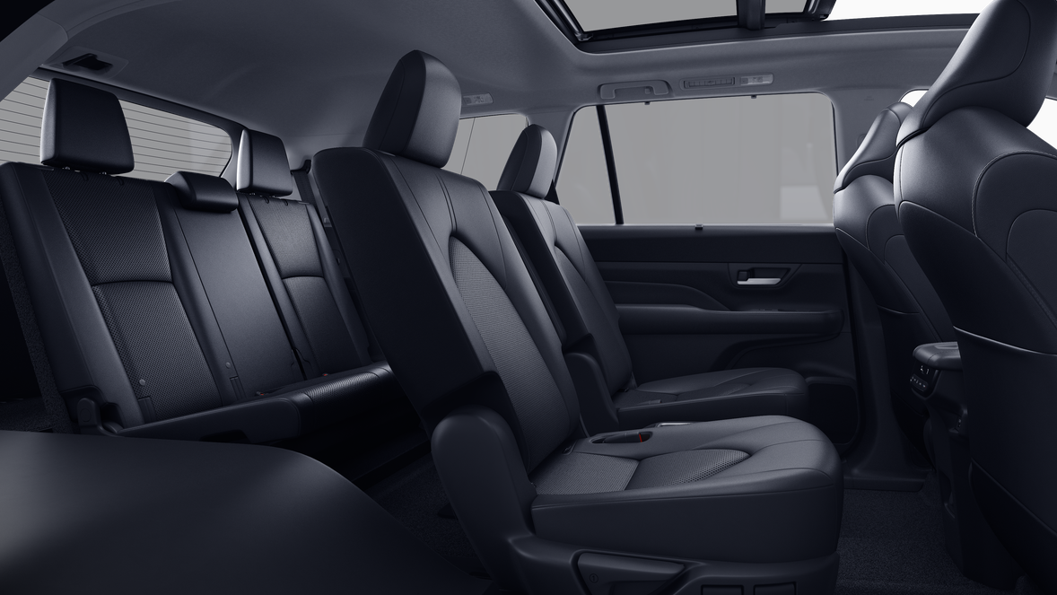 - 7-passenger seating with second-row fold-down captain's chairs and fold-down inboard armrests, adjustable headrests and two cup holders mounted on the floor; and 60/40 split, fold-down third-row seats with sliding headrests and recline function