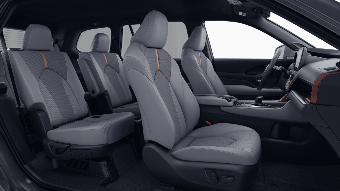 - Leather-trimmed with Ultrasuede® front- and second-row seats; heated and ventilated front seats; 10-way power-adjustable driver's seat including power lumbar support; 8-way power-adjustable front passenger seat; seat memory function