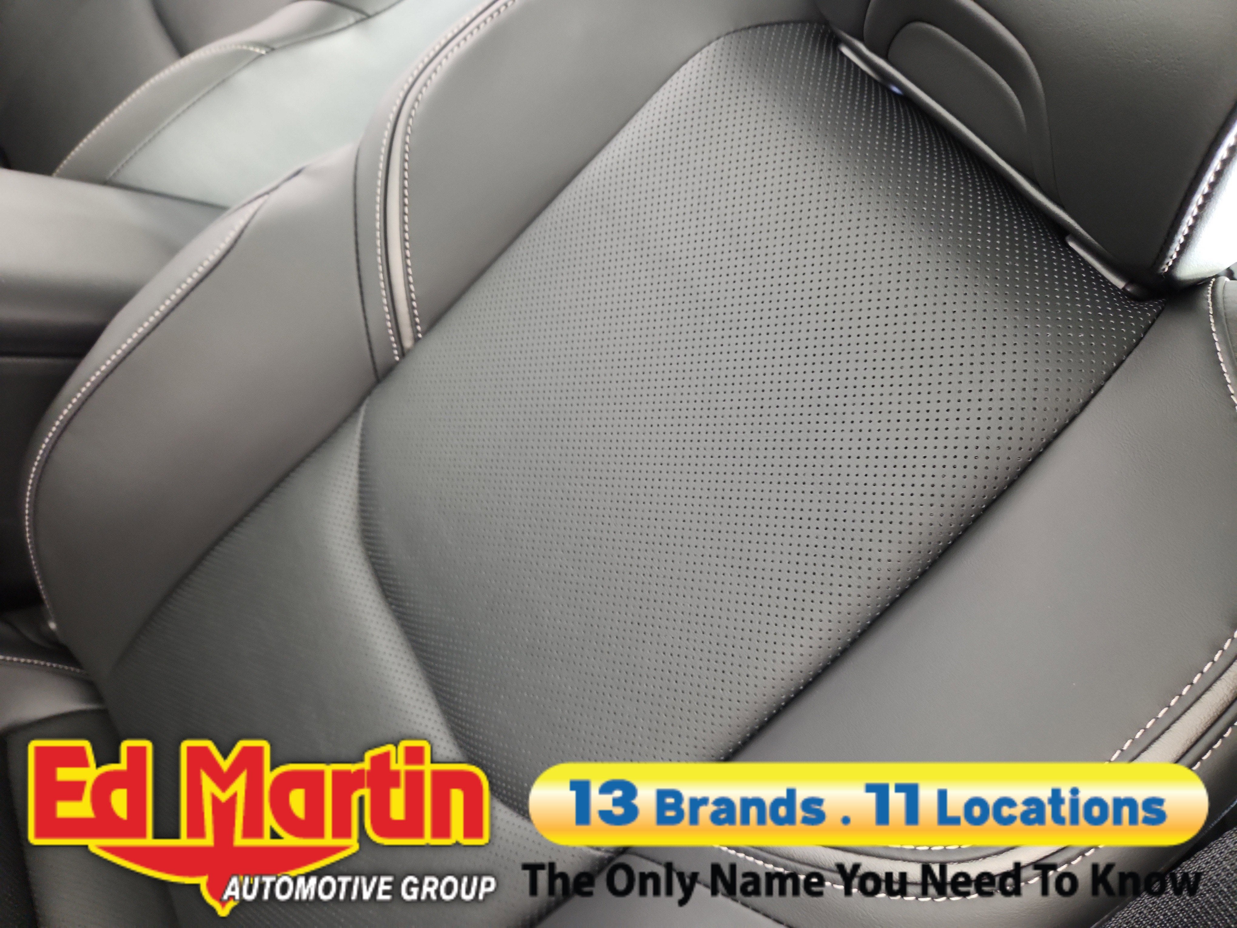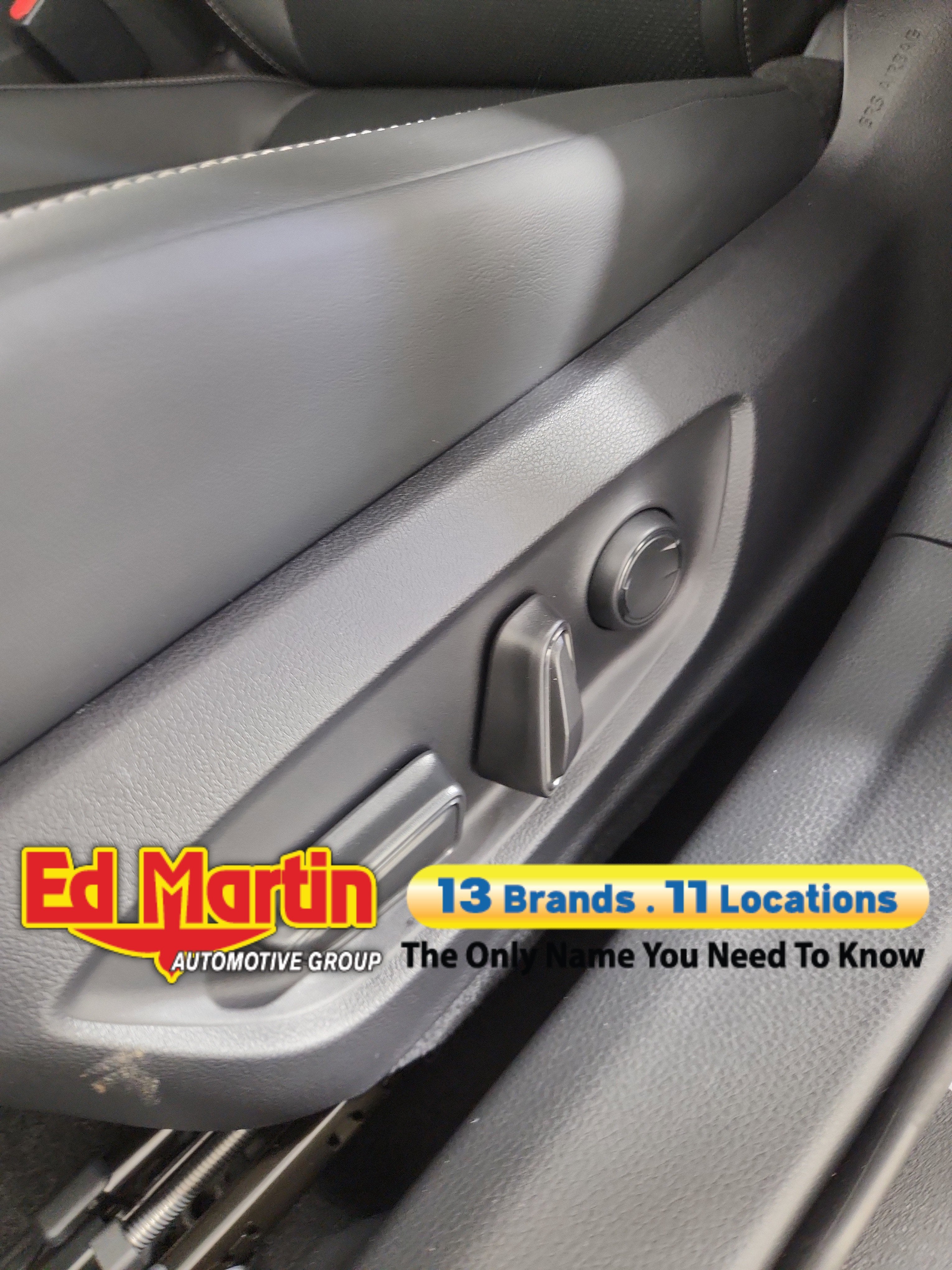 - Black with gray stitching SofTex®-trimmed front seats with seatback pockets; 8-way power-adjustable driver's seat including power lumbar support; 6-way adjustable front passenger seat