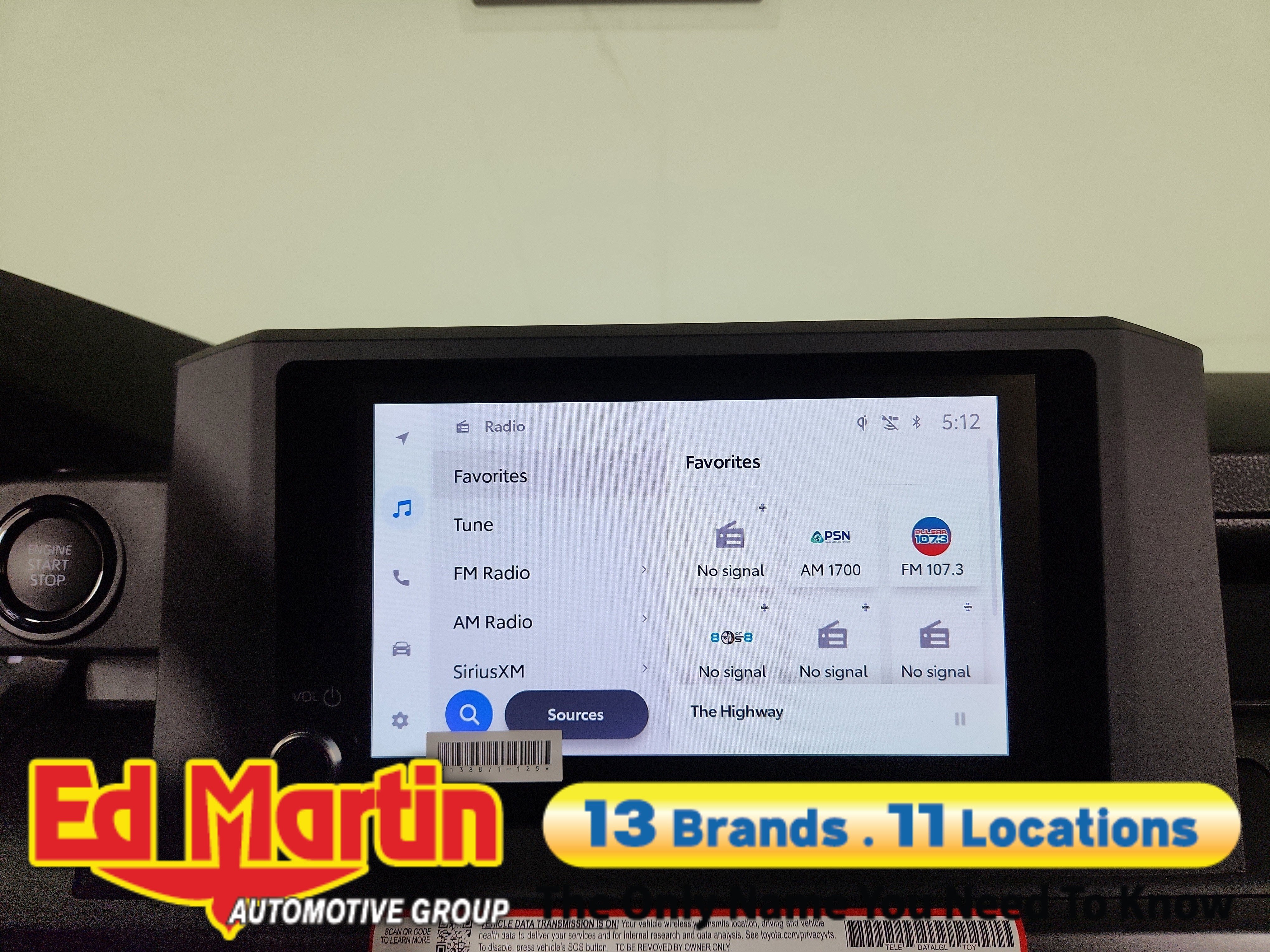 - 8-in. Toyota Audio Multimedia display with 6-speaker audio system, wireless Apple CarPlay® & Android Auto™ compatibility, SiriusXM® 3-month trial subscription. See toyota.com/connected-services for details.