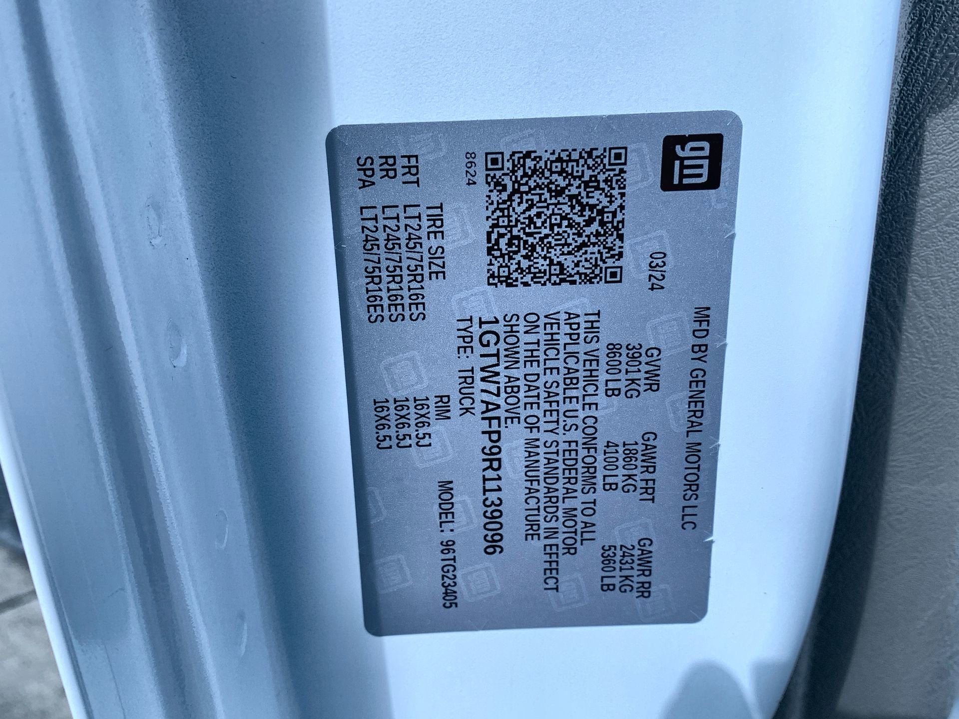 - Front Tire Size: LT245/75R16E